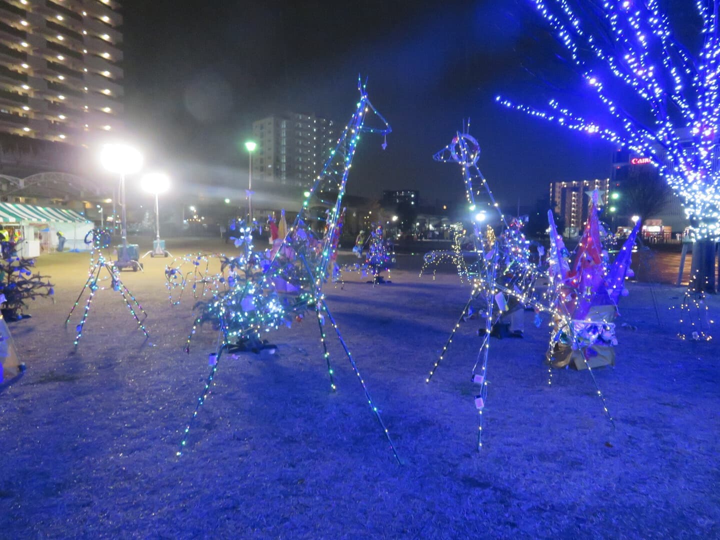 カラービニール・園芸用支柱・カラーモールなどさまざまな素材を組み合わせて、動物の形や、カラフルなXmasのイルミネーションツリーをつくります。